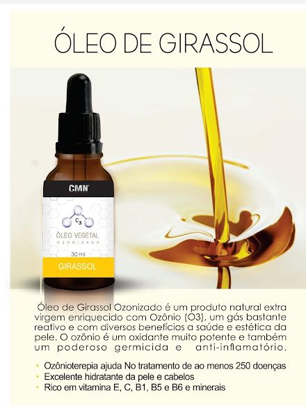 O óleo de girassol com ozônio (possui fortes propriedades antifúngicas) é um remédio para primeiros socorros, possui excelentes propriedades, é um leve anestésico, incentiva o fluxo de sangue para a áreas danificadas, ajuda a melhorar a circulação, destoxificar a pele, evitando manchas e combatendo bactérias, acabando assim com a infecção da pele.